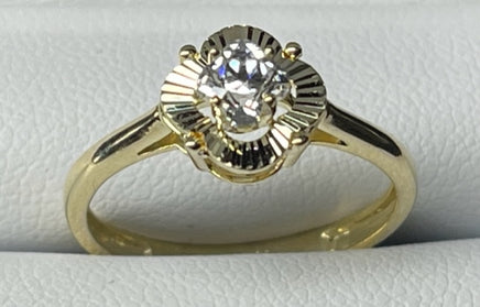 A flower-shaped (quadrant) ring with a big CZ stone in the middle.